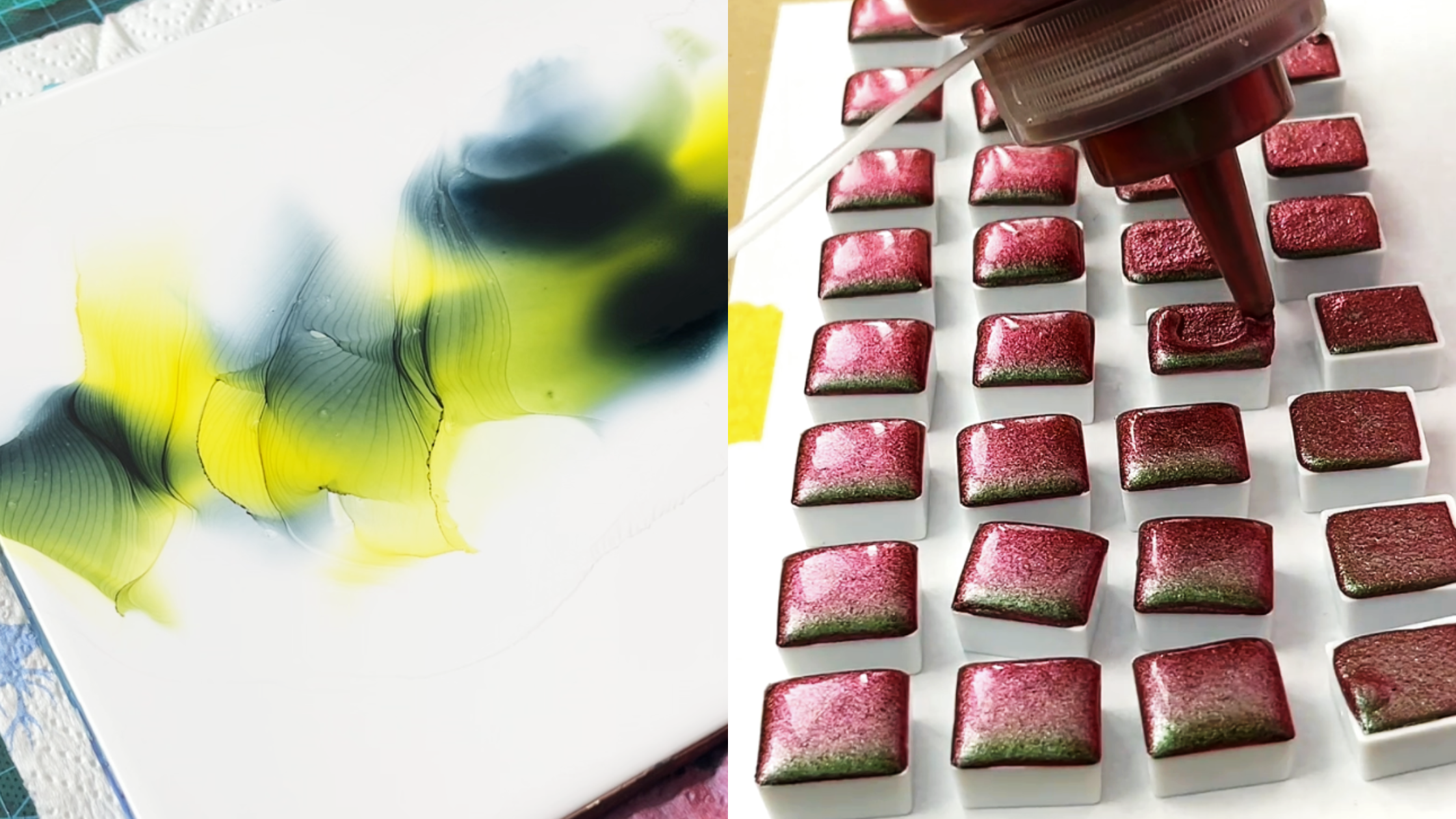Video recordings of painting processes and material interactions.