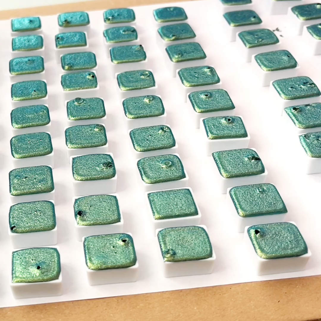 The material behavior presented here consists of recorded pigment processes that have already taken place. The archive contains documented production sequences and material variations within this system. The videos are preserved in their original form and presented as archival records.